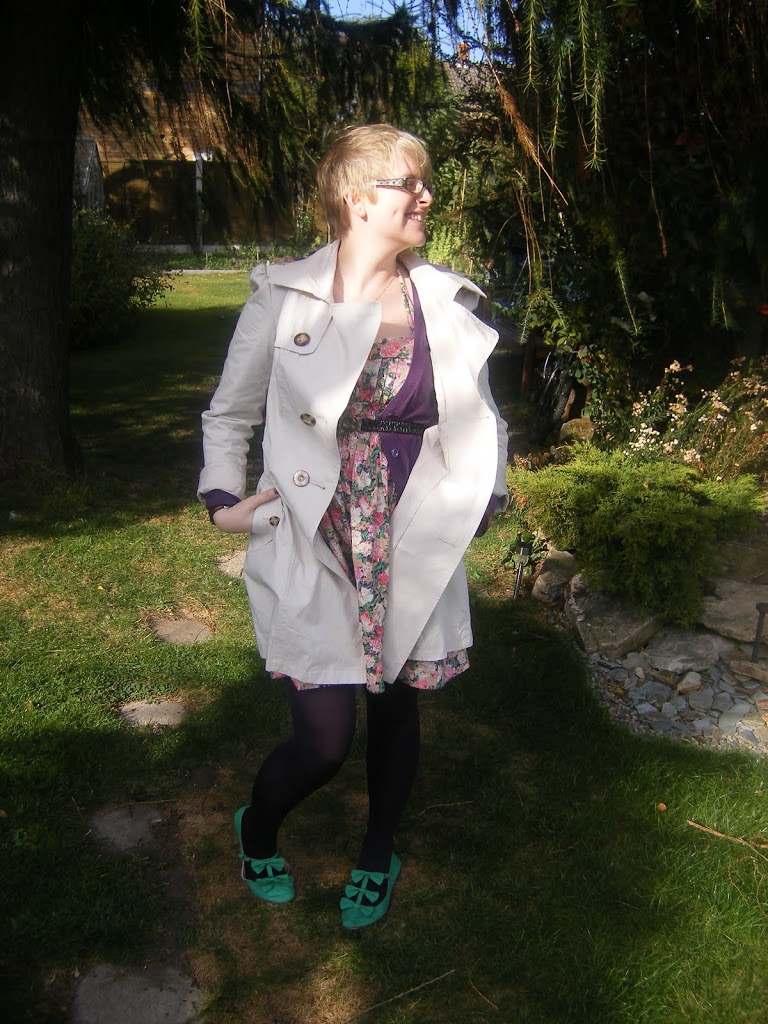 Anyway, the clothes. I wore this dress all summer – it’s a 50s halterneck style and so easy to sling on. When it starts to get very cold, I might try it with a polo neck or fine knit jumper. The mac was a fabulous find in Primark – I love that shop. The key to Primark shopping is to choose natural fibres (I have a few acrylic cardigans from there, they bobble so easily and make me sweat!) and don’t go for the ‘latest hot pick’, because you know everyone else will be wearing the same.
